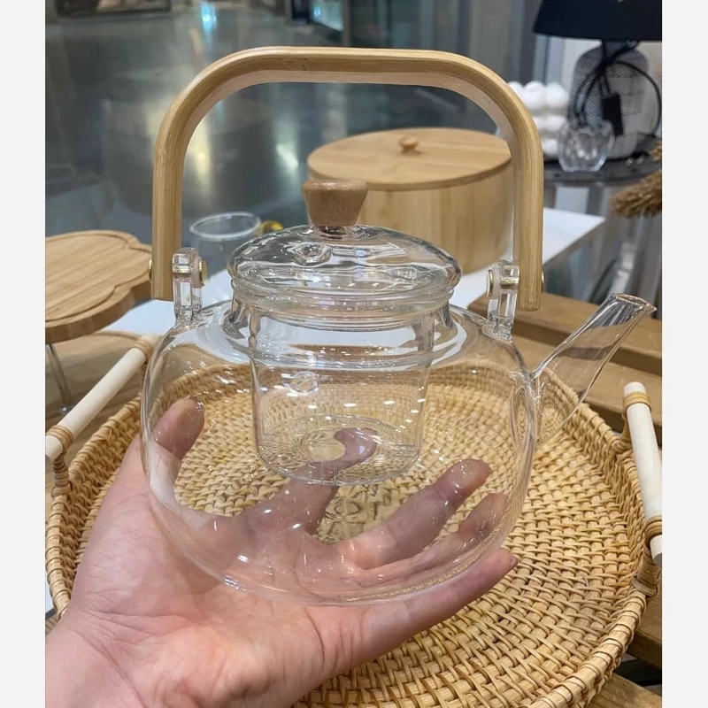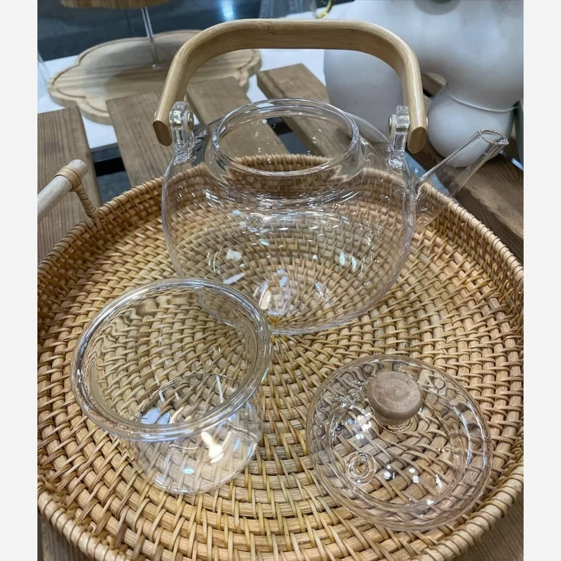 قوری پیرکس دسته بامبو رنگ شامپاینی (پس کرایه)