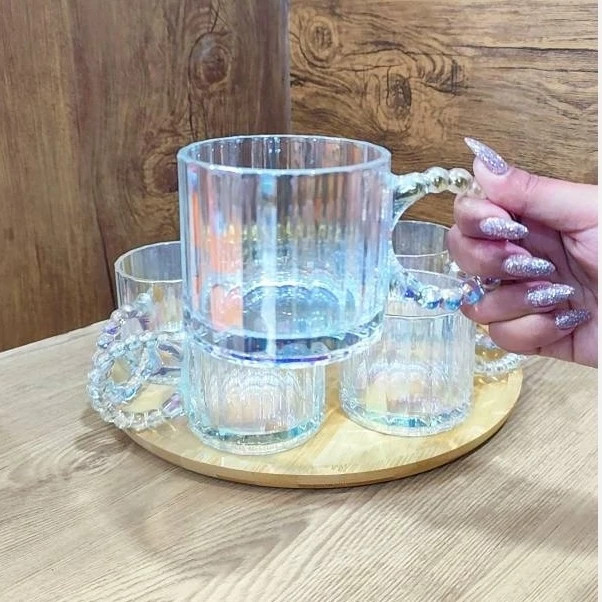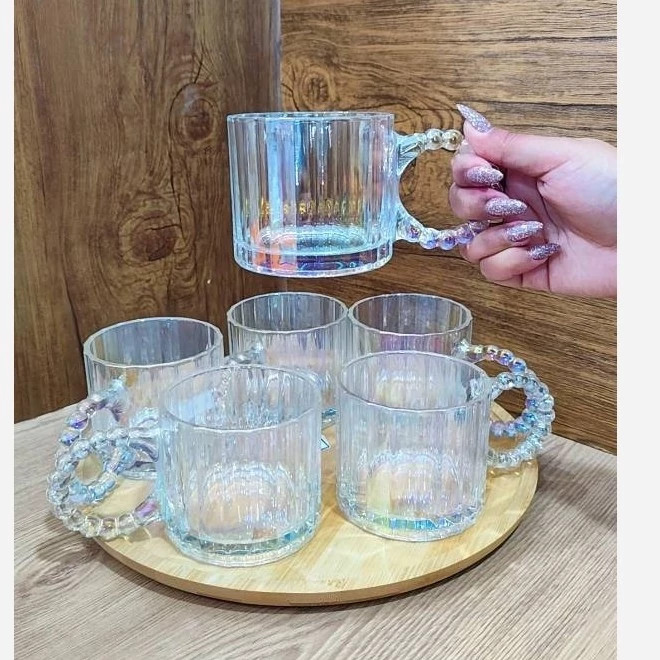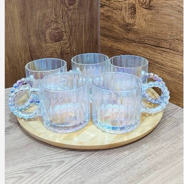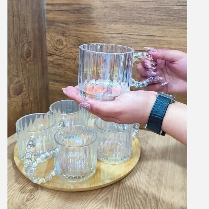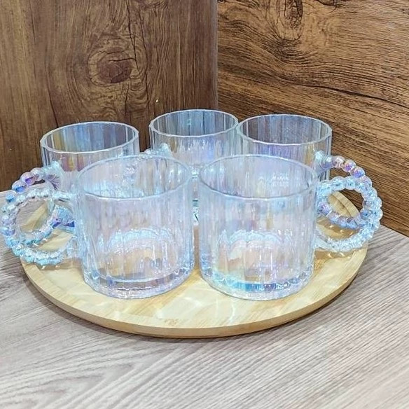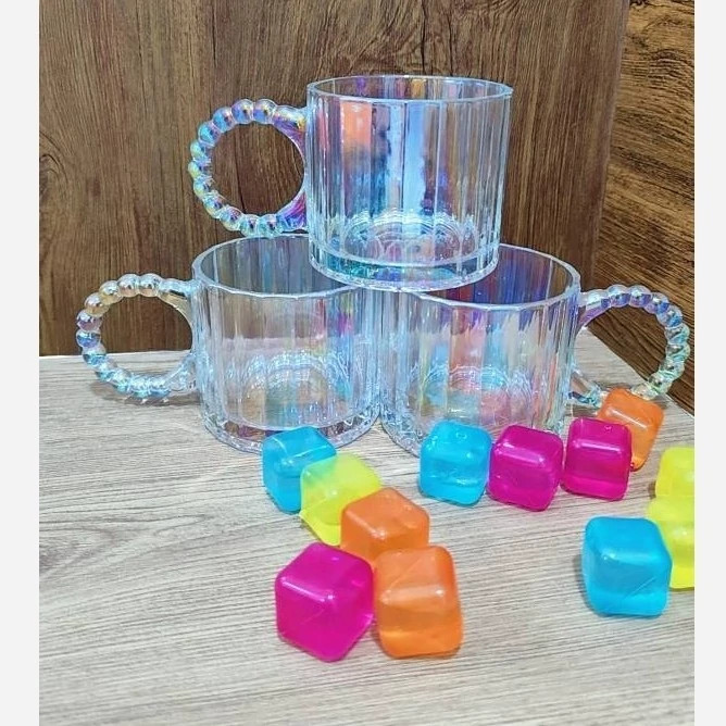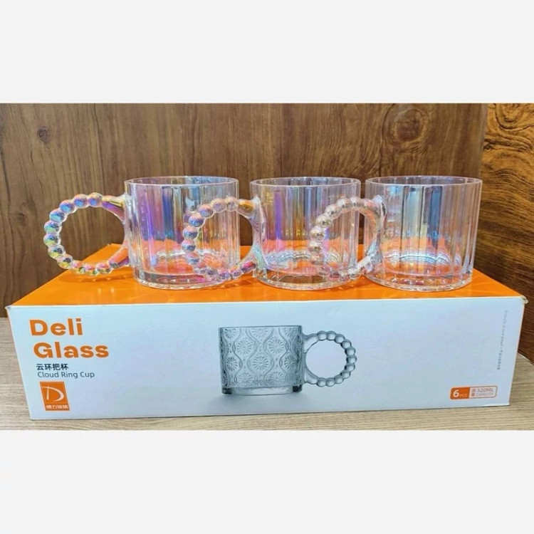 ست 6 تایی لیوان دسته مرواریدی هلوگرامی وارداتی مارک Deli (پس کرایه)