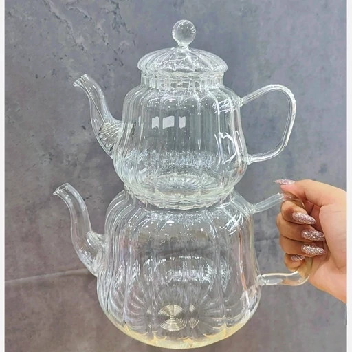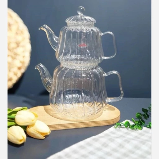 کتری قوری پیرکس شفاف مدل خمره ای دو تیکه وارداتی (پس کرایه)