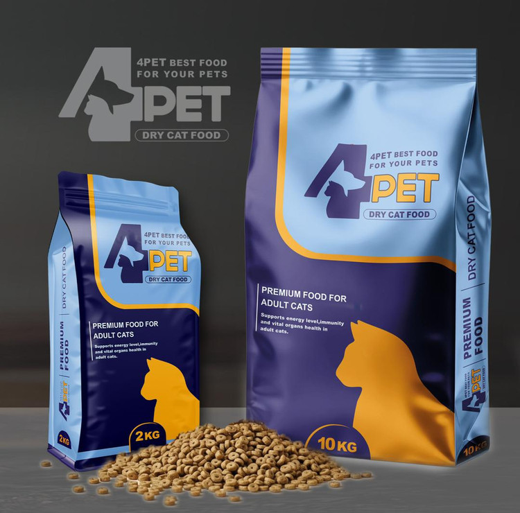 ترکیبات: پروتئین مرغ و ماهی، پروتئین گوشت گوساله، ذرت، چربی حیوانی، روغن نباتی، برنج، طعمدهنده، ویتامینها و مواد معدنی، مخمر، نمک، مواد نگهدارنده، آرد گندم، آنتیاکسیدان