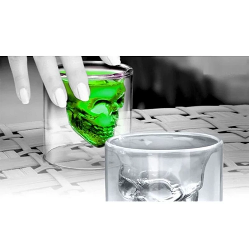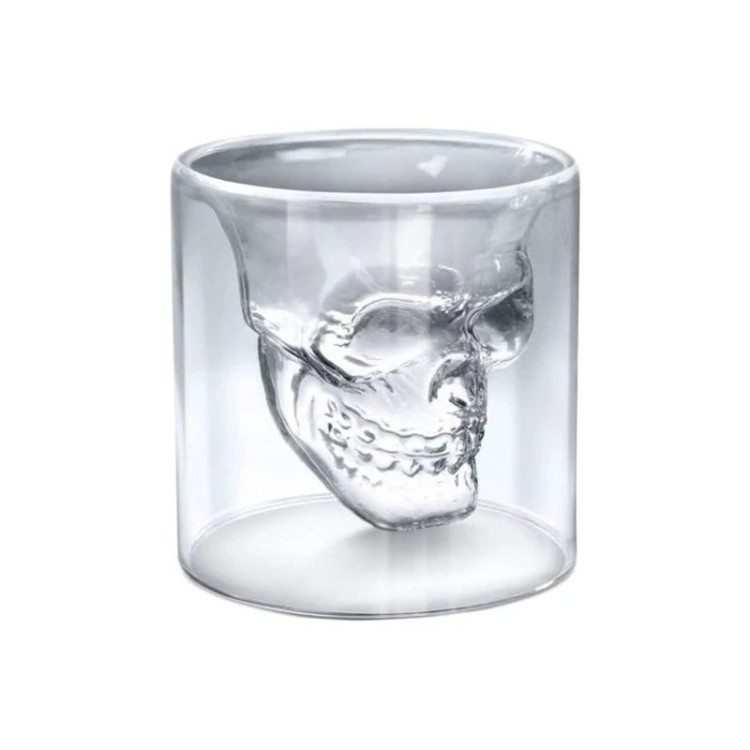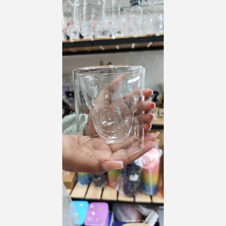 لیوان پیرکس دوجداره طرح جمجمه سایز 9*9 (پس کرایه)
