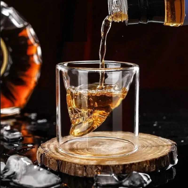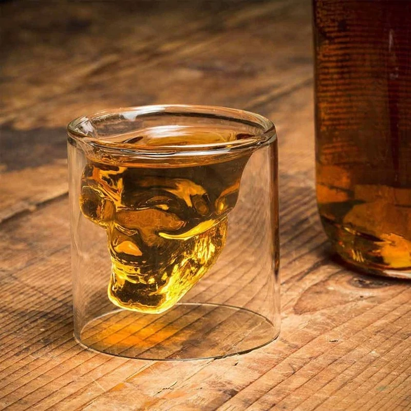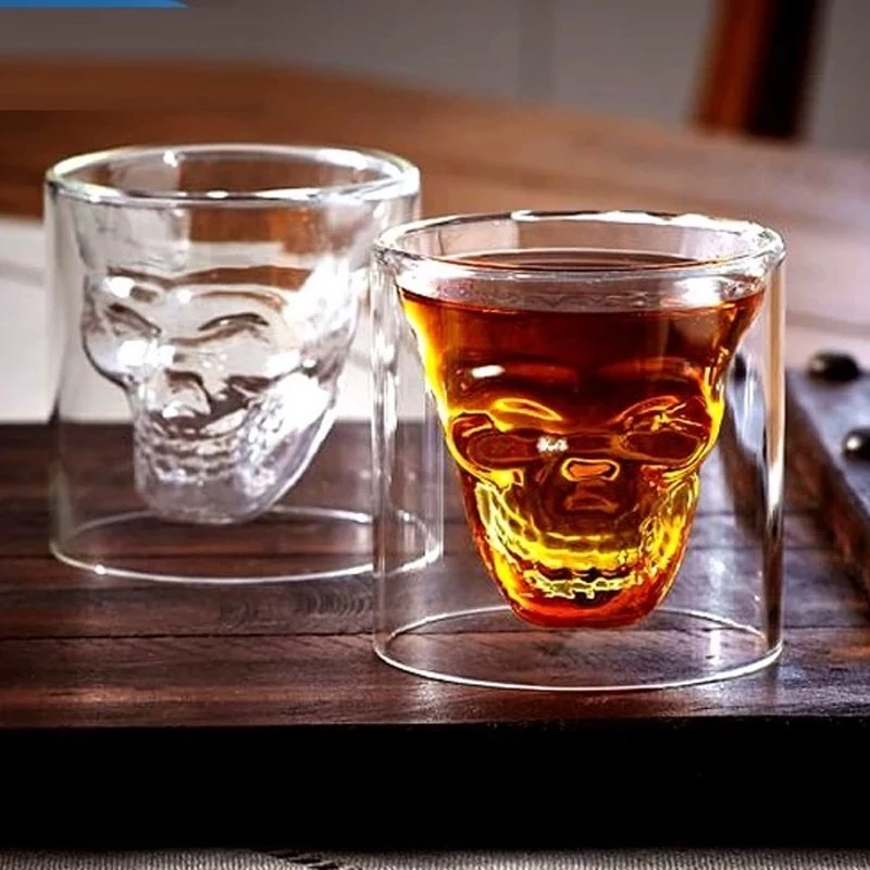 لیوان پیرکس دوجداره طرح جمجمه سایز 9*9 (پس کرایه)