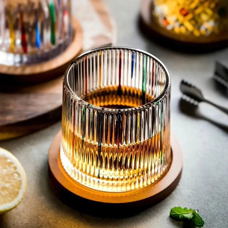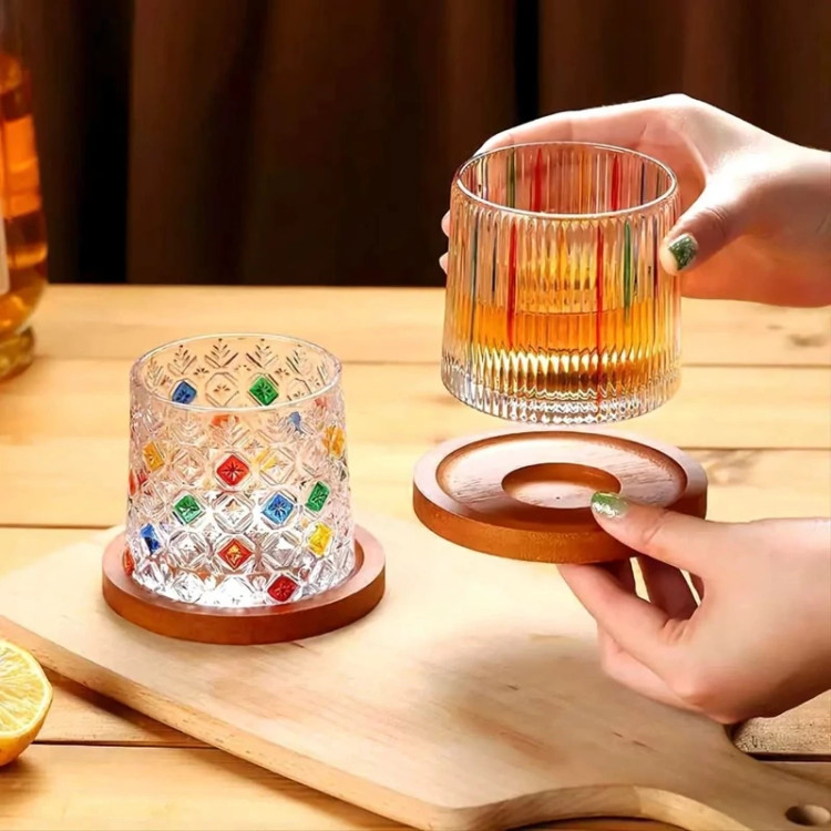لیوان چرخشی تک عدد همراه زیر لیوانی چوبی وارداتی (پس کرایه)