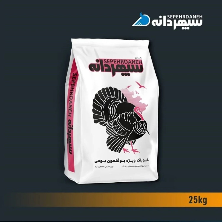 خوراک ویژه بوقلمون تخمگذار بومی سپهردانه بسته 25 کیلویی (پس کرایه)